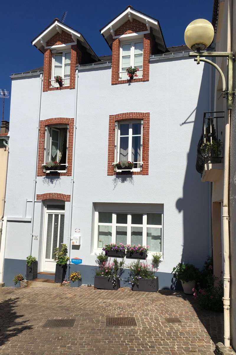 Dans une maison ancienne située dans une ruelle piétonne du quartier historique de Pornic, près du château et du vieux port, vous serez chaleureusement accueillis par Virginie. Tout le 1er étage de 43 m2 de la maison vous est réservé. Il comprend une chambre décorée avec goût de meubles anciens, une grande salle de bain privée pourvue d'une douche à l'italienne, d'une baignoire d'angle et de WC,et d'un salon privé avec un plateau de courtoisie. Le petit-déjeuner copieux est compris dans le prix. Il est composé de produits bio venant des fermes aux alentours et servi dans le patio luxuriant aux beaux jours ou dans le séjour avec poutres et pierres apparentes.