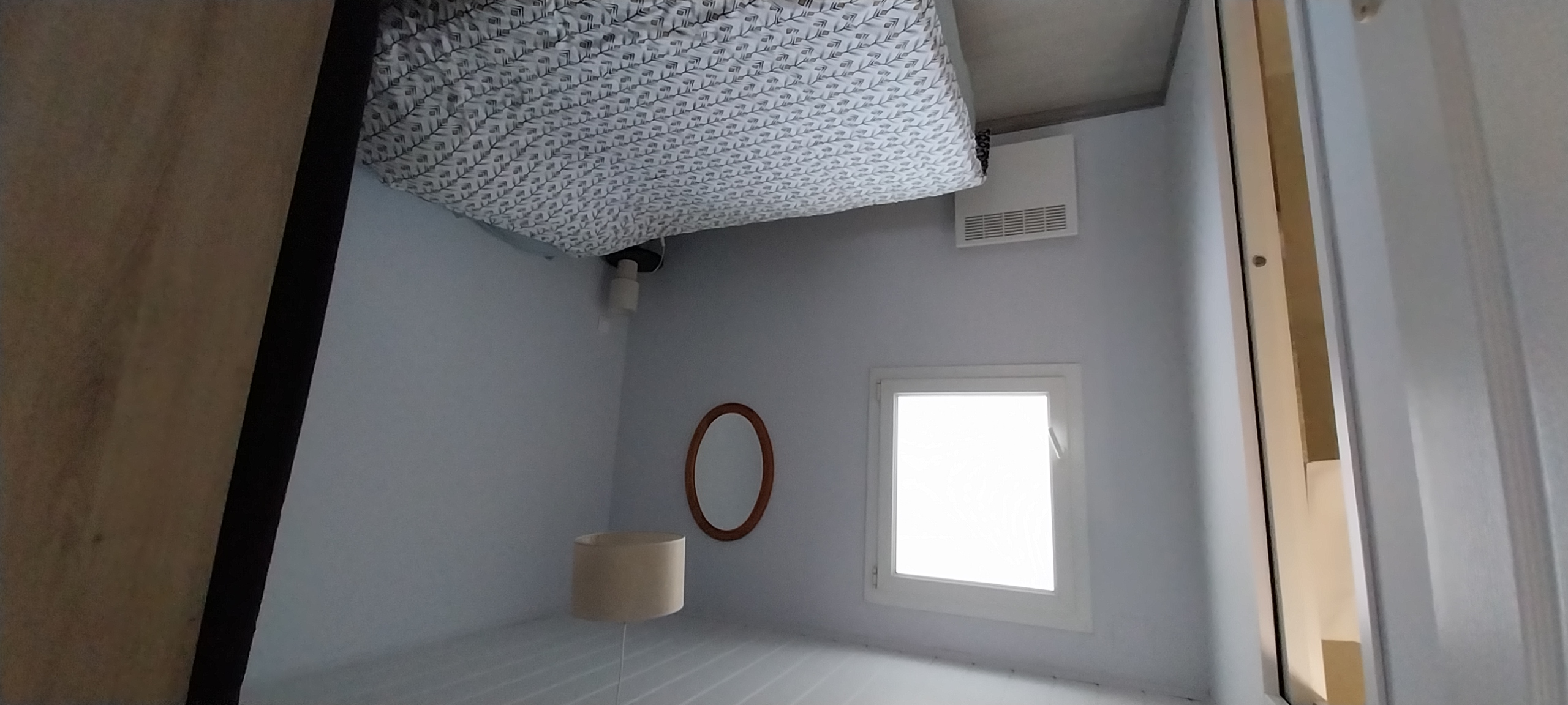 La chambre est aménagée avec un lit de 140 cm, et une salle d'eau avec douche et WC est à disposition.